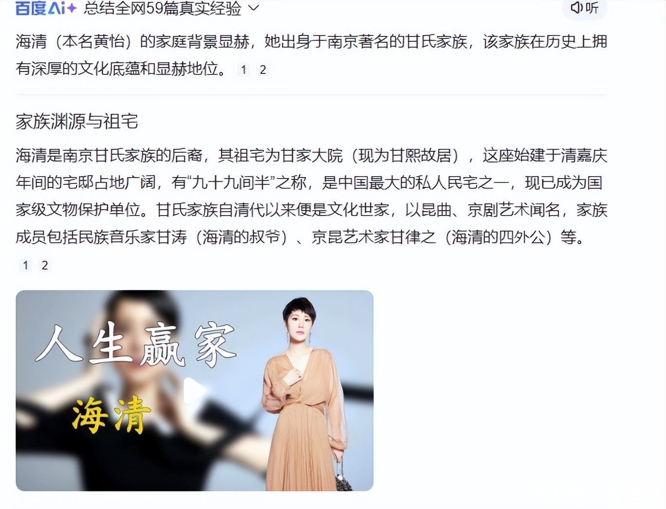 海清出生于南京一个文化氛围浓厚的家庭,家世渊源深厚,堪称艺术世家。她的祖辈甘熙曾在清代官至要职,家族宅邸即今日闻名遐迩的甘家大院,现已被列为国家级文物保护单位与旅游景点。