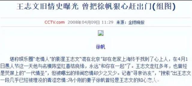 但是没想到却遭到了王志文的拒绝,随之徐帆就打算靠自己的努力进步。 没想到,徐帆和导演田壮壮却传出了绯闻,王志文听说后,两人的矛盾不断,一起之下就将徐帆赶出了家门。